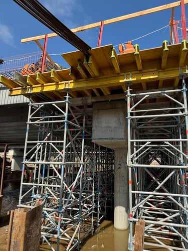 Layher pastolių sistemos suteikė stabilų ir lanksčiai pritaikomą pagrindą. ALLROUND sistema pasižymi universalumu, leidžiančiu ją pritaikyti sudėtingoms konstrukcijoms ir suteikti reikiamą paramą visiems tilto elementams. TG 60 sistema, skirta sunkiasvorėms laikinosioms atramoms, užtikrino tikslią ir patikimą atramą, reikalingą tilto konstrukcijų įgyvendinimui.