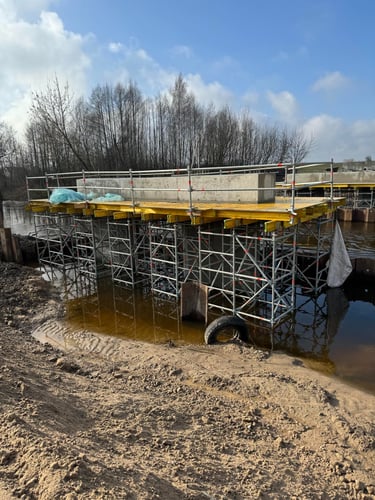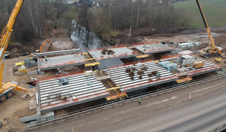 Naujasis tiltas per Šešupę A1 magistralėje buvo pastatytas naudojant pažangias Layher pastolių sistemas ir specialią TwixBeam technologiją.