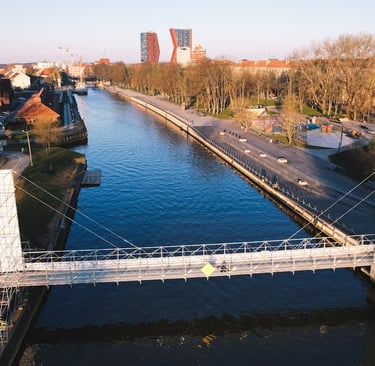 Iš pradžių planuotas kaip laikina pėsčiųjų jungtis, tiltas per Danę tapo ne tik funkcionaliu infrastruktūros sprendimu, bet ir gyva miesto erdve – susitikimų vieta bei kasdienio judėjimo dalimi.